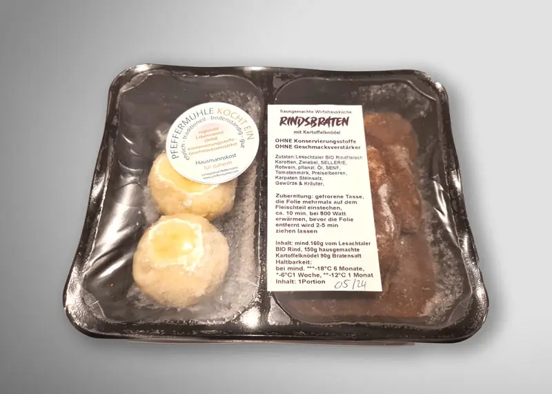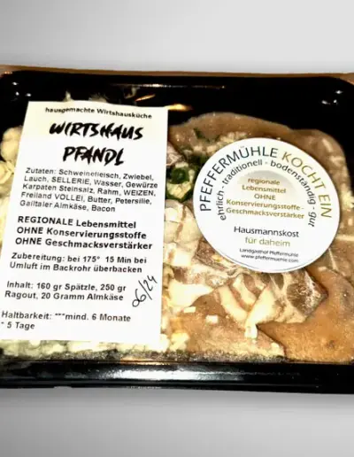 These are precisely the dishes that are also served to our guests in the “Wirtshaus Pfeffermühle”.