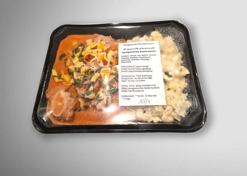 - Prepared with mainly regional products and quickly heated in the pot or in the microwave.