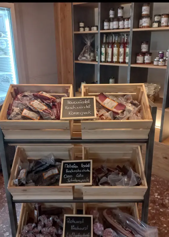 Ambilini Cafe` - Defregger Senf - Freilandeier vom fahrenden Hühnerstall aus Nölbling - Selchspezialitäten vom Lesachtaler Fleisch - Osttiroler Henkele /Fleischhauerei Mühlstätter / Matrei - Honig von Ernst Unterlaas / Kötschach und Imkerei Winkler aus Gentschach / Lesachtal - Kürbiskernöl von einem Sieger 2022, Fam. Ottanbacher aus Mureck / Steiermark - Schokolade von der Manufaktur Pichler /Sillian