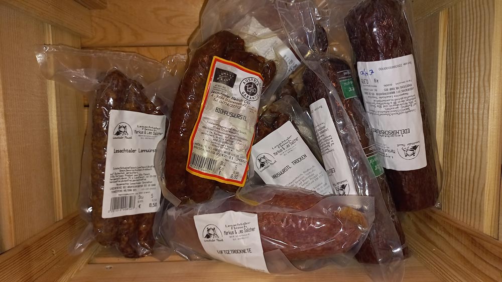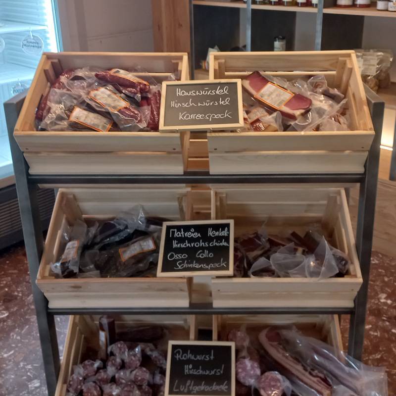 Ambilini Cafe` – Defregger Senf – Freilandeier vom fahrenden Hühnerstall aus Nölbling – Selchspezialitäten vom Lesachtaler Fleisch – Osttiroler Henkele /Fleischhauerei Mühlstätter / Matrei – Honig von Ernst Unterlaas / Kötschach und Imkerei Winkler aus Gentschach / Lesachtal – Kürbiskernöl von einem Sieger 2022, Fam. Ottanbacher aus Mureck / Steiermark – Schokolade von der Manufaktur Pichler /Sillian