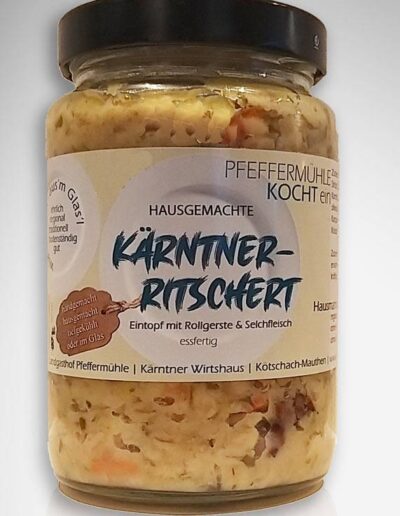 Unsere Wirtshausküche im Glas, für Sie zu Hause. Ob ein Kärntner Ritschert, ein Kalbsbeuschl oder eine Rindessuppe – das sind nur einige unserer Glasgerichte.