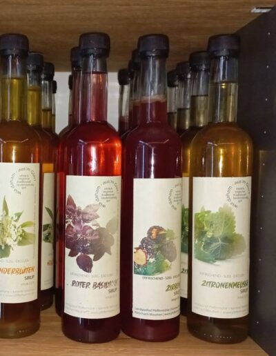 Ob Wiesensalbei, Minze, Zirben, Basilikum, Hollunderblüten, Felsenbirne, Aronia, Quitte oder Zitronenmelisse. Wir machen daraus besondere Spezialitäten. Herrlich erfrischend oder fruchtig-likörig – wirklich für jeden Geschmack etwas dabei.