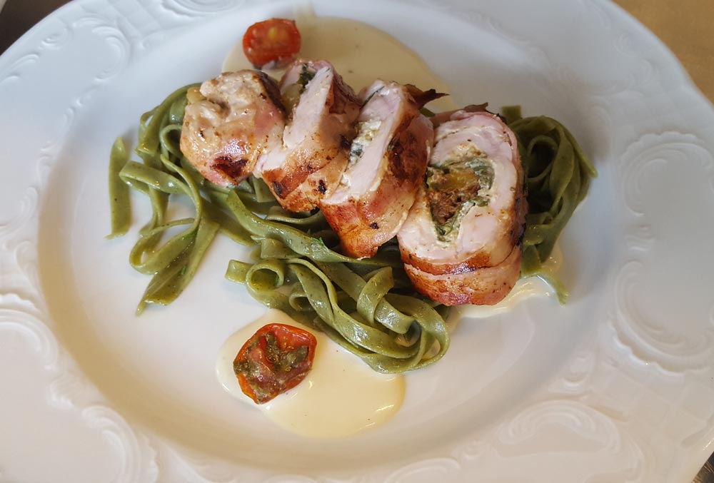 - Auch viel unserer anderen Lebensmittel werden vom heimischen Landwirt produziert. Dazu zählen z.B. Eier aus dem Wanderstall, Kärntner Kartoffeln, Gailtaler Almkäse, im Sommer die Salate und das Gemüse vom Gemüsebauer, Äpfel für unsere Strudel, natürlich auch der Lavanttaler Spargel oder das selbst fermentierte Kraut und die hausgemachten Marmeladen, die Milchprodukte aus Kärnten uvam.